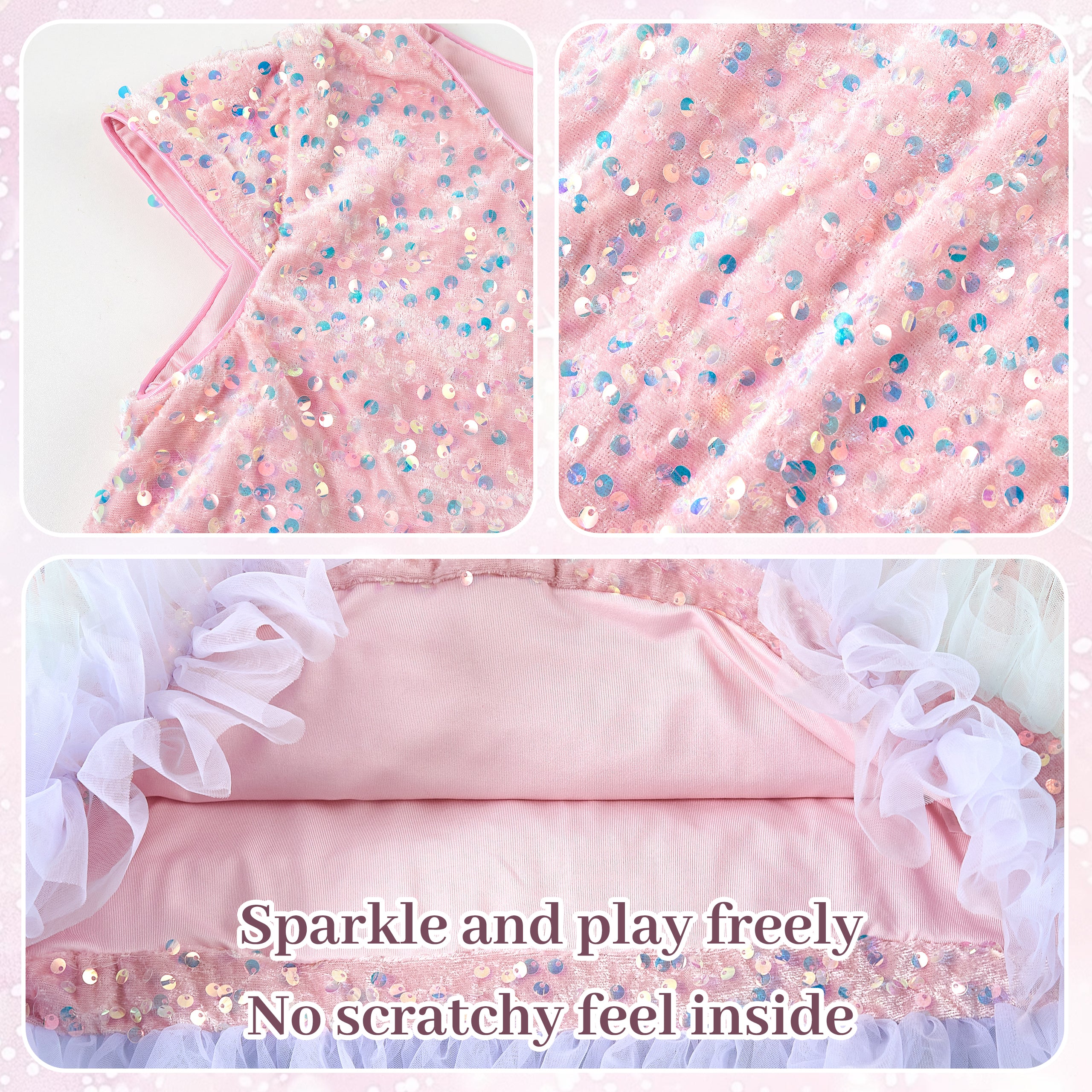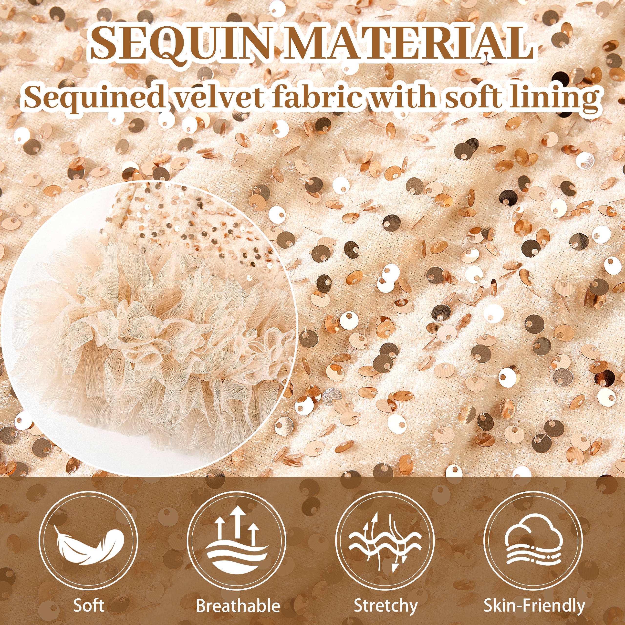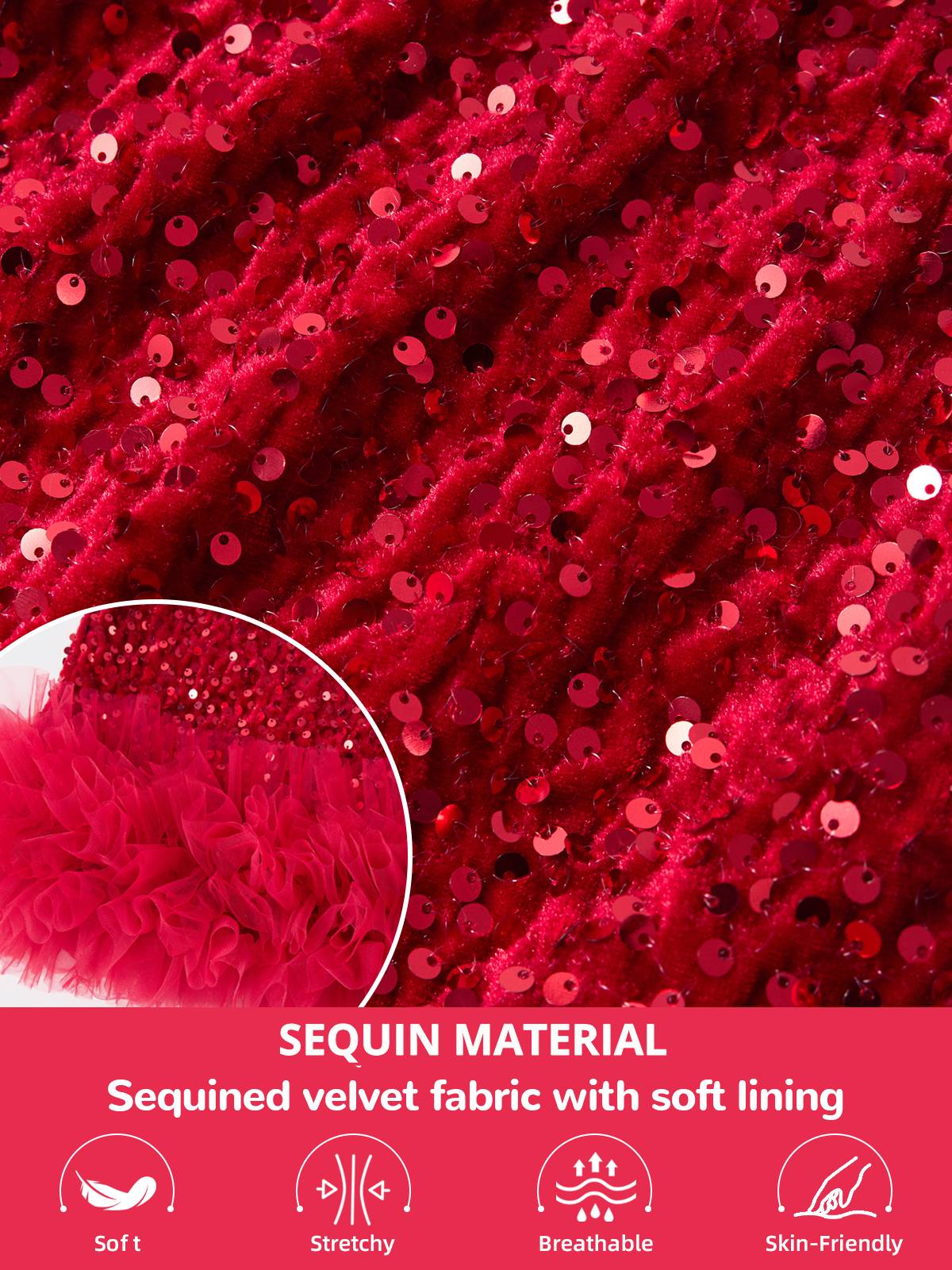 - Soft Fabric: Toddler girl sequin dress is made of velvet fabric embellished with sequins,shining brightly in the light.The fabric is gentle on the skin,allowing your little one to enjoy a comfortable wearing experience.