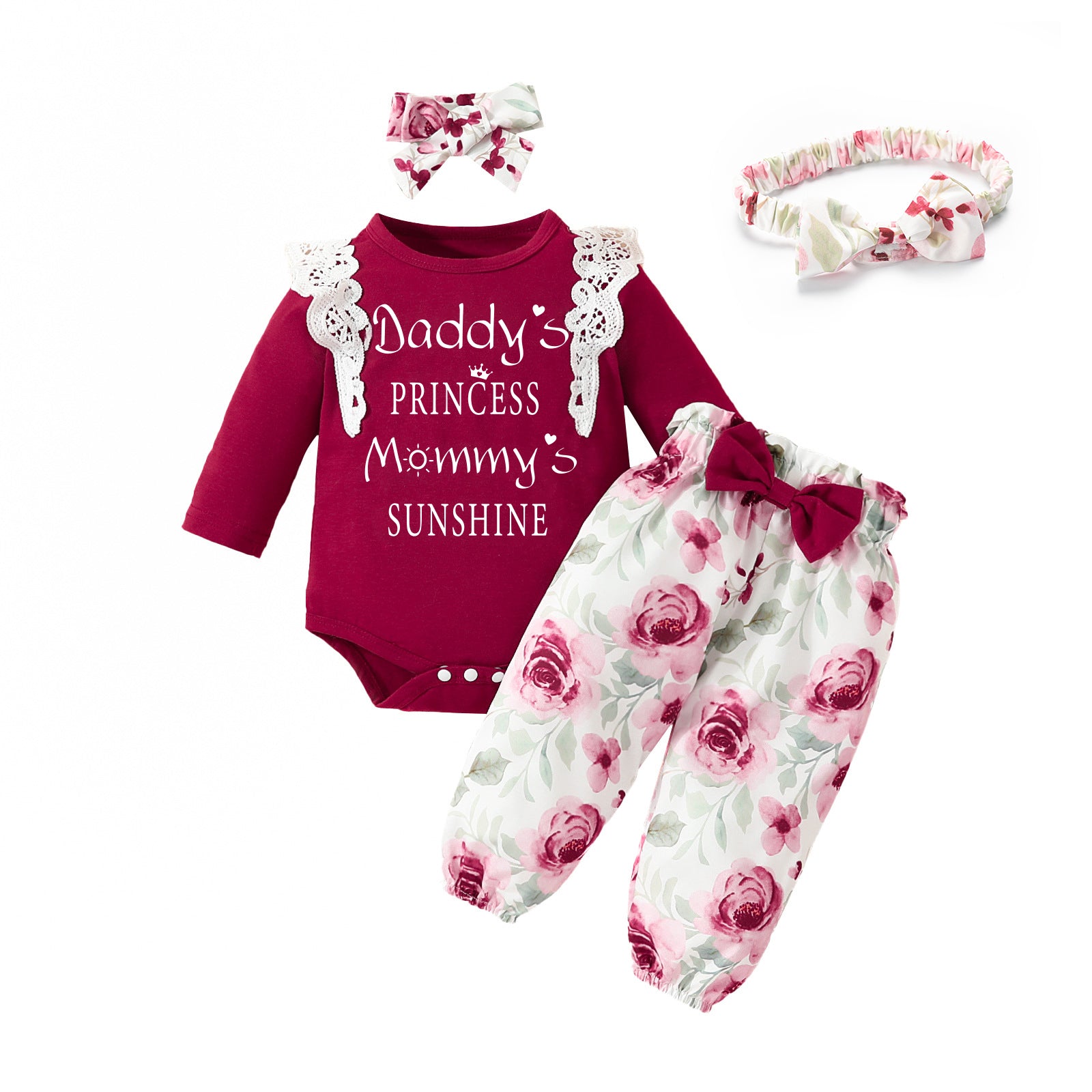Baby Girl Fall Bodysuit Plus Pants Set with Headband