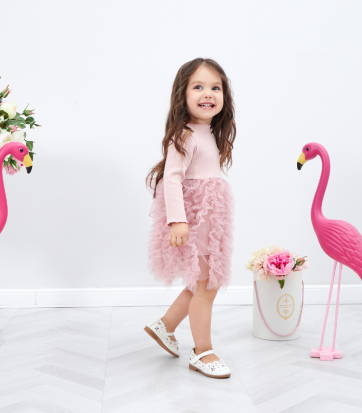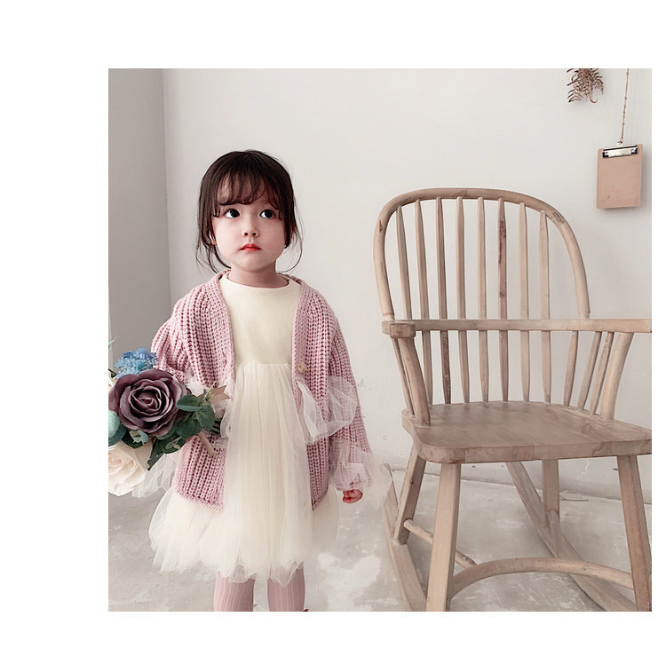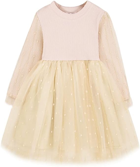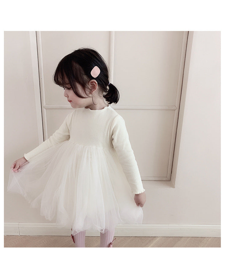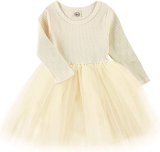 Toddler Long Sleeves Knit Ribbed Ruffle Sweater Tulle Dresses