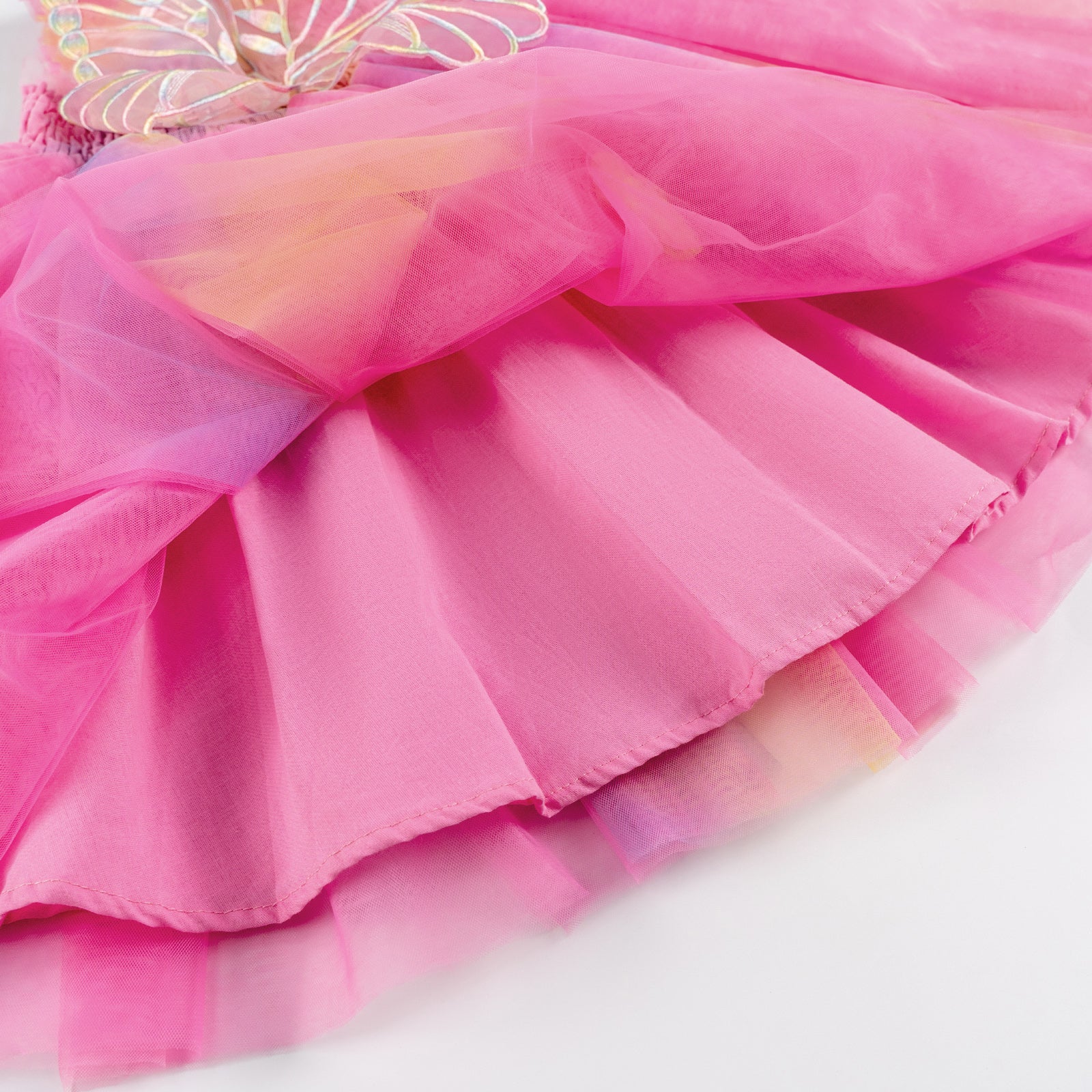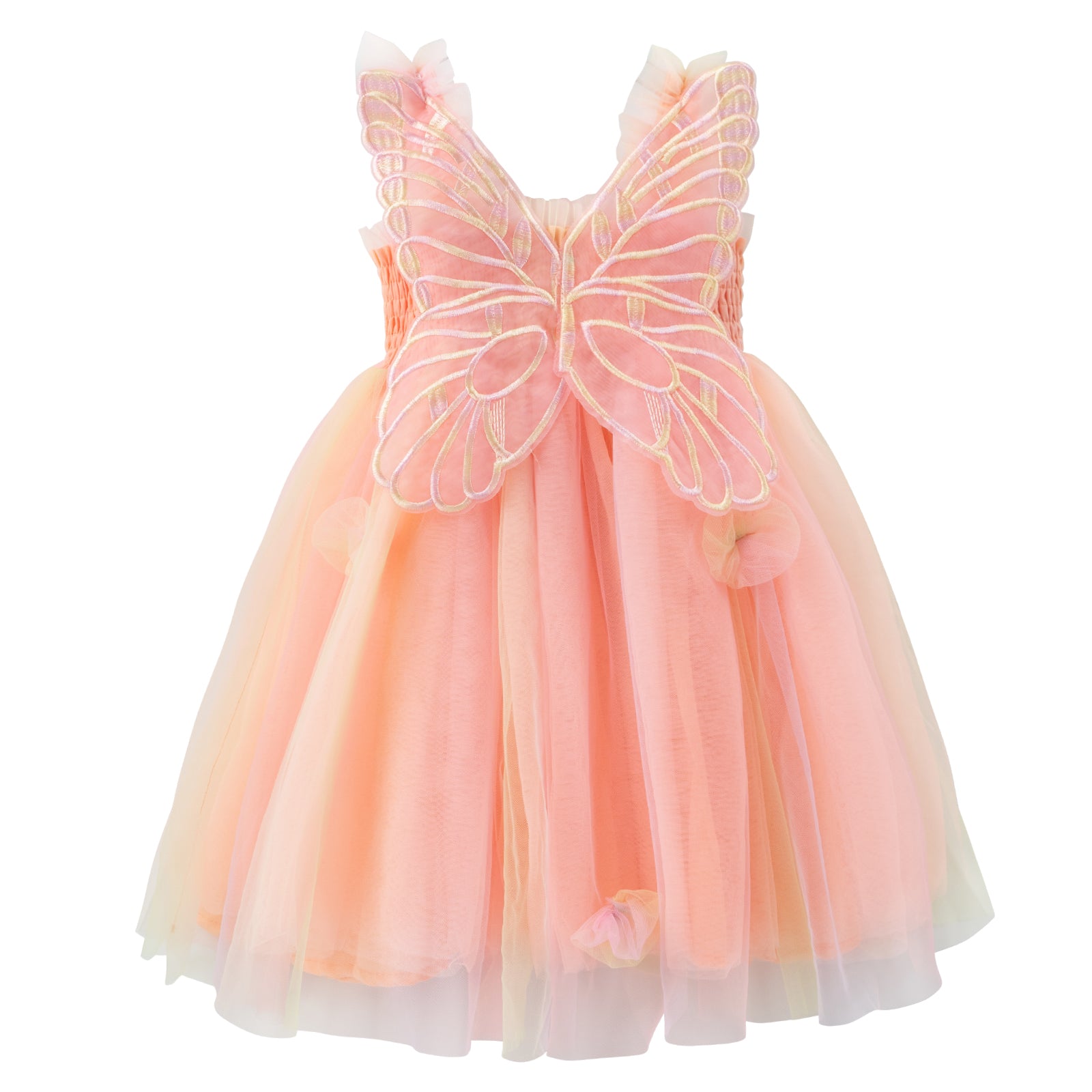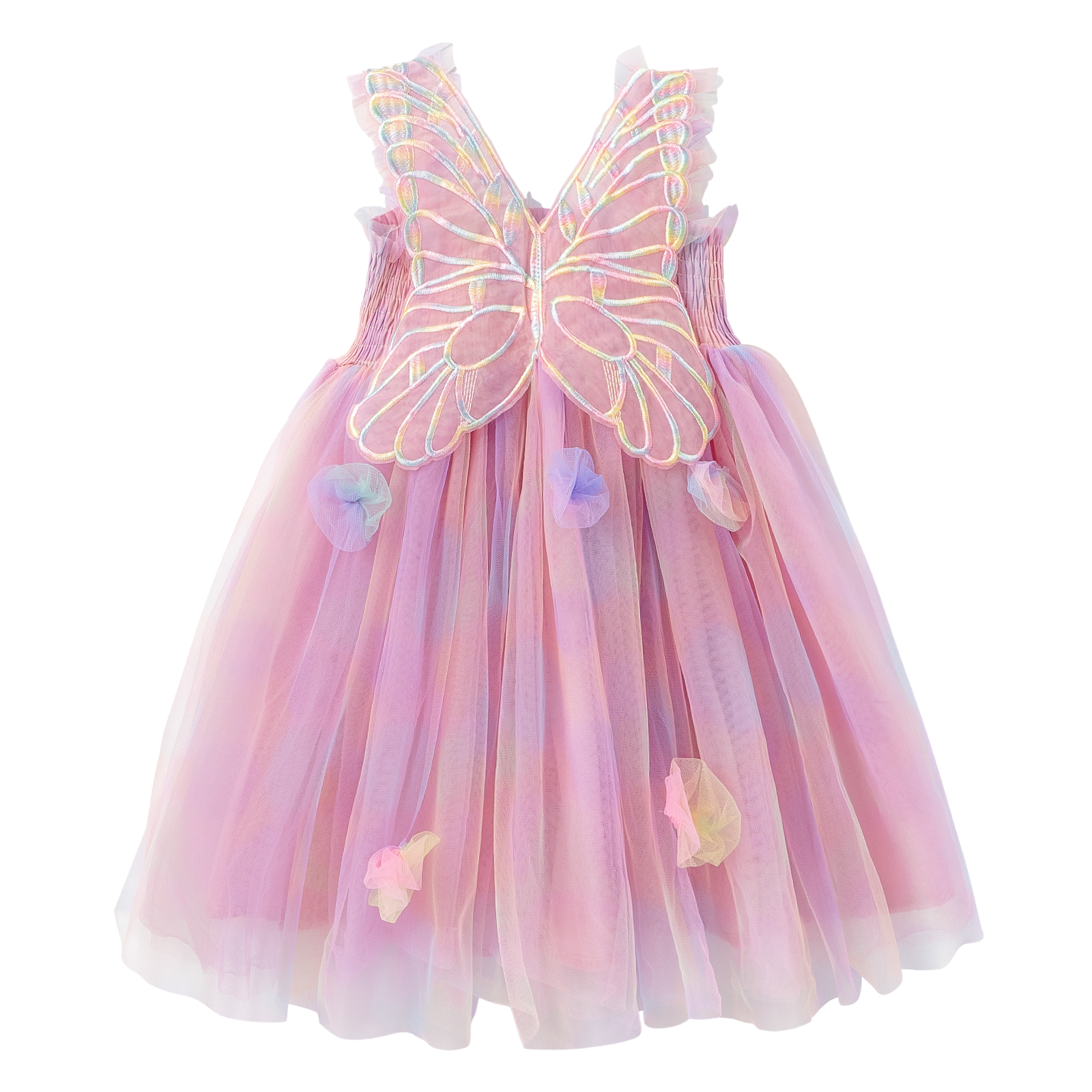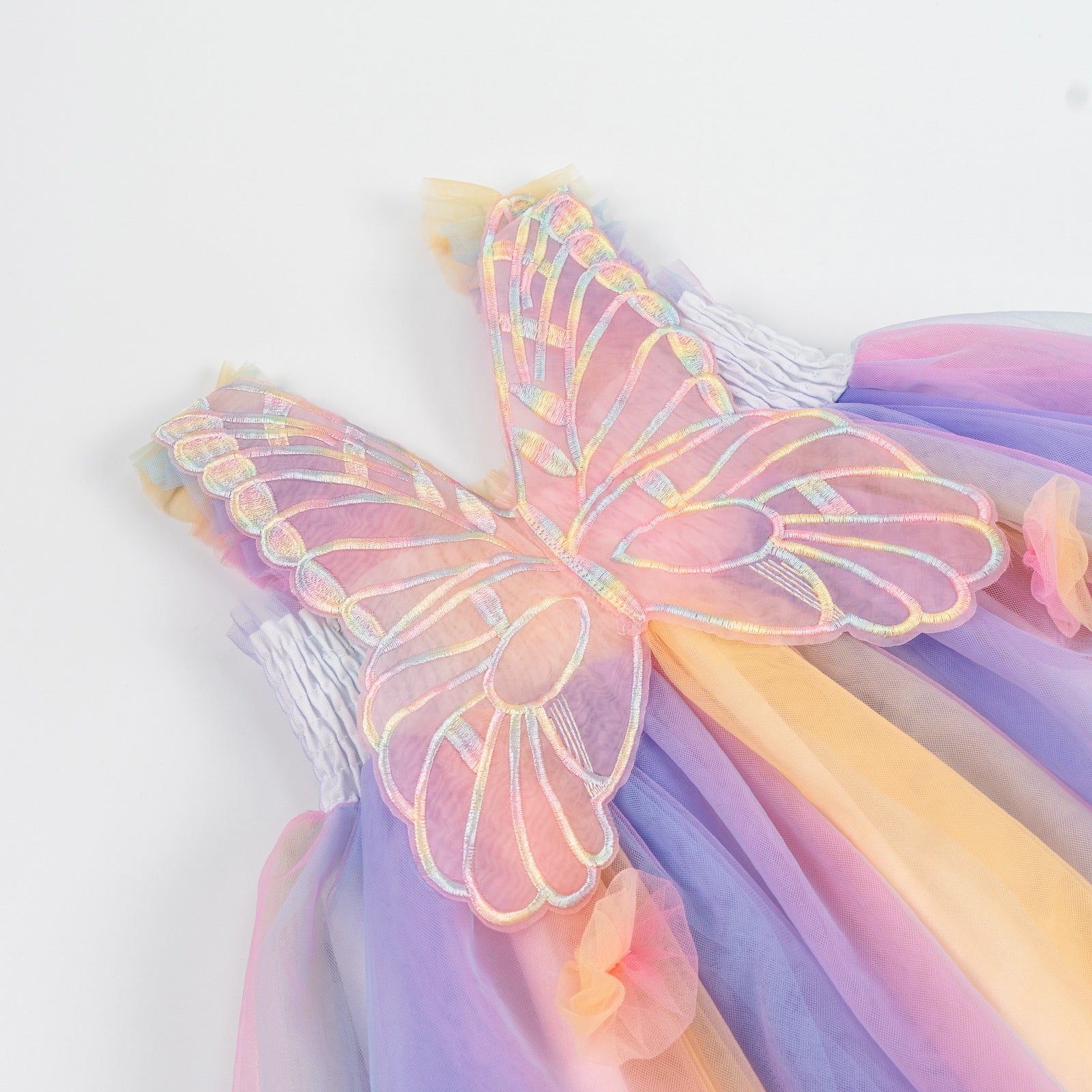 - [ADORABLE DESIGN] Baby girls fairy dress has butterfly wings and 3D floral embellishments. The loose hemline and self-adjusting elastic band fit baby girls perfectly, making this dress the perfect birthday gift for a girl.