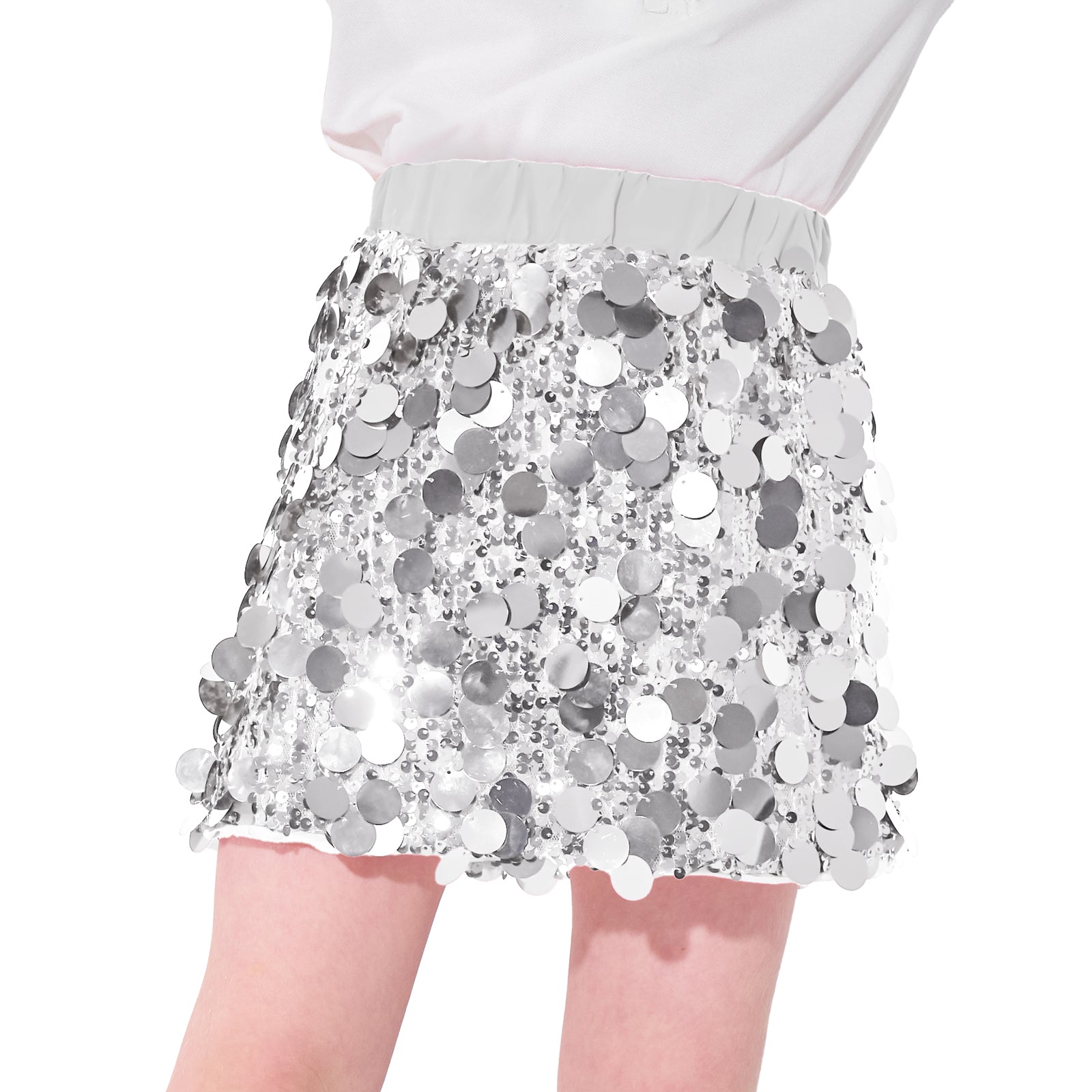- 【Charming Design】Sequin skirt is decorated with sparkly sequins, and the large sequin design resembling fish scales adds to its cuteness and fashionable appeal. The dazzling sequin fabric beautifully captures light and adds charming colors to dress.