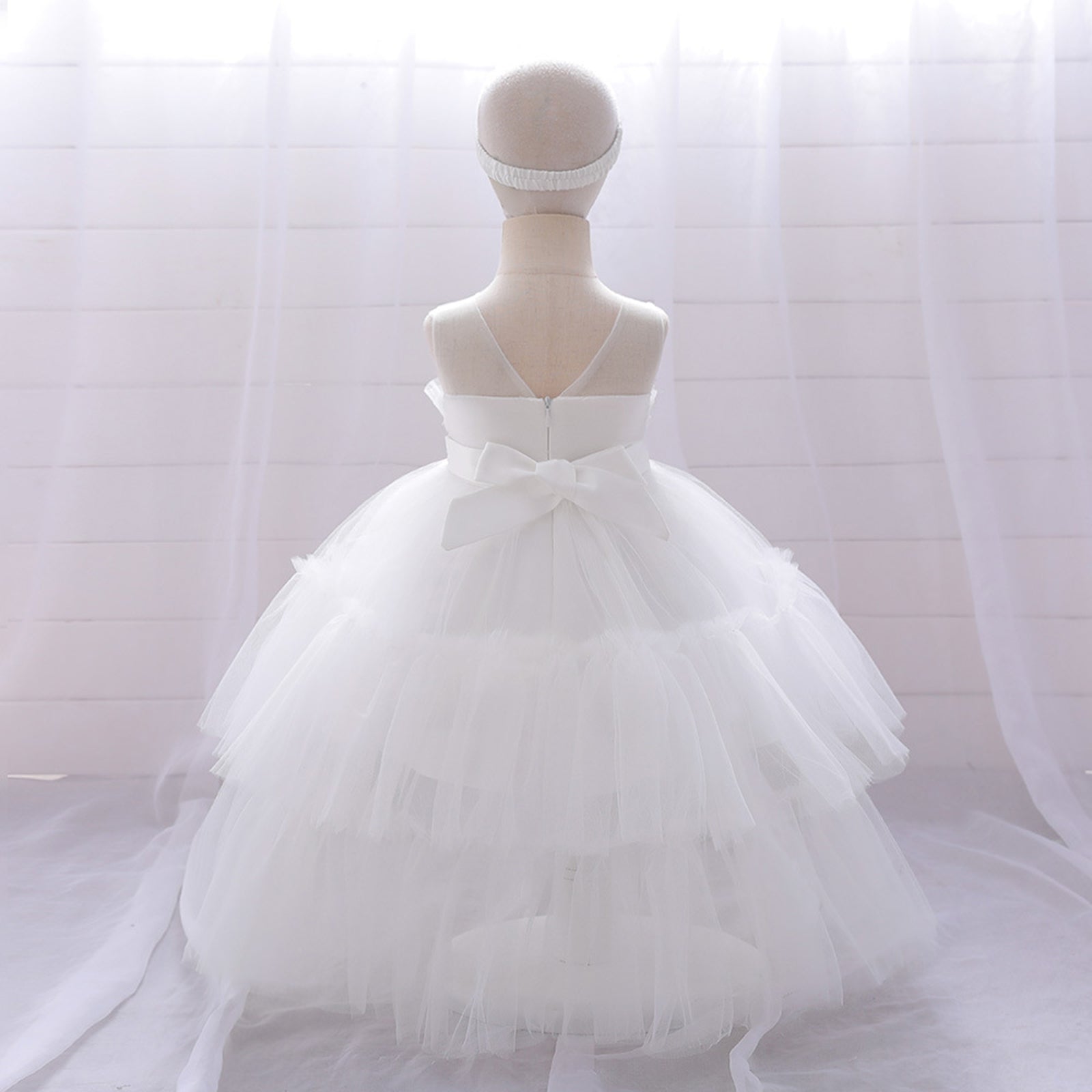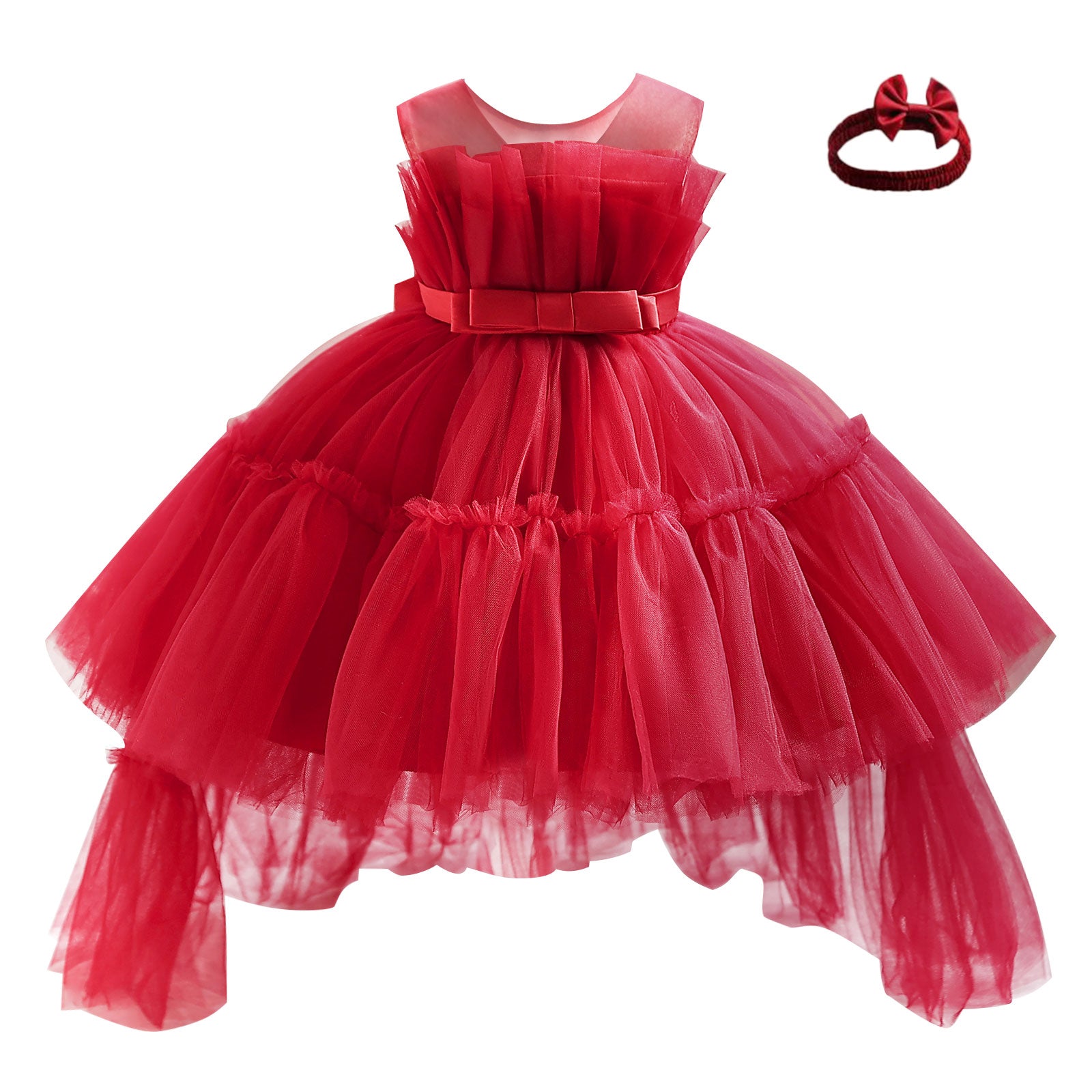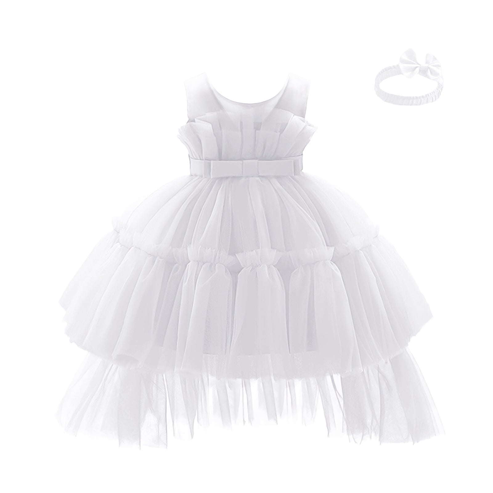 - ♛[Lovely Features] Baby flower girl dress , classic pleated tulle, bow belt , train design, small tailored V back, hidden zipper, cute bow headband, it is the perfect gift for a princess baby girl.