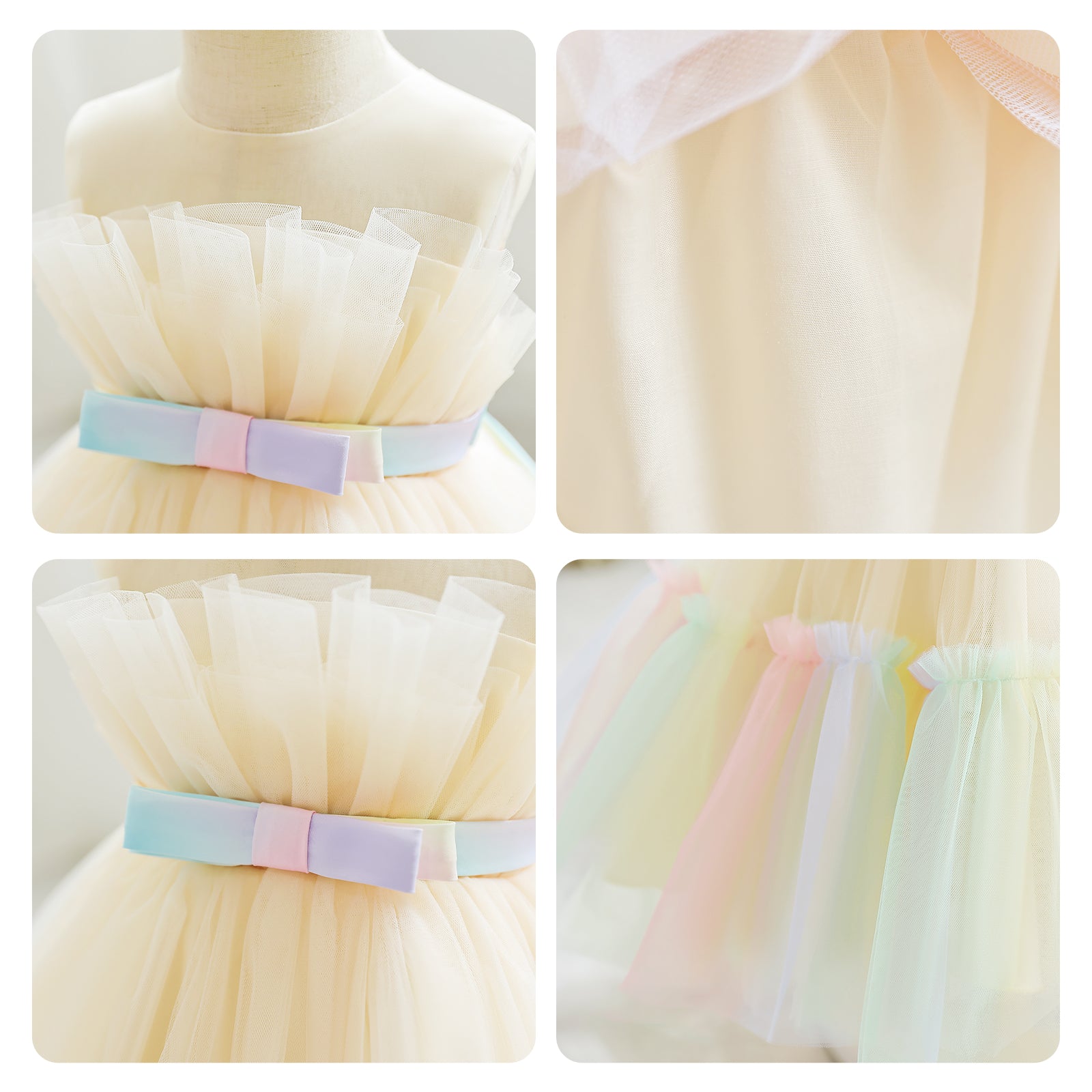 - ♛[Thoughtful Design] Baby girl tulle dress has rich layers, including a layer of soft tulle, a layer of trailing tulle, a layer of satin and a layer of cotton lining, which gives the dress a puffy appearance while also protecting the baby's skin.