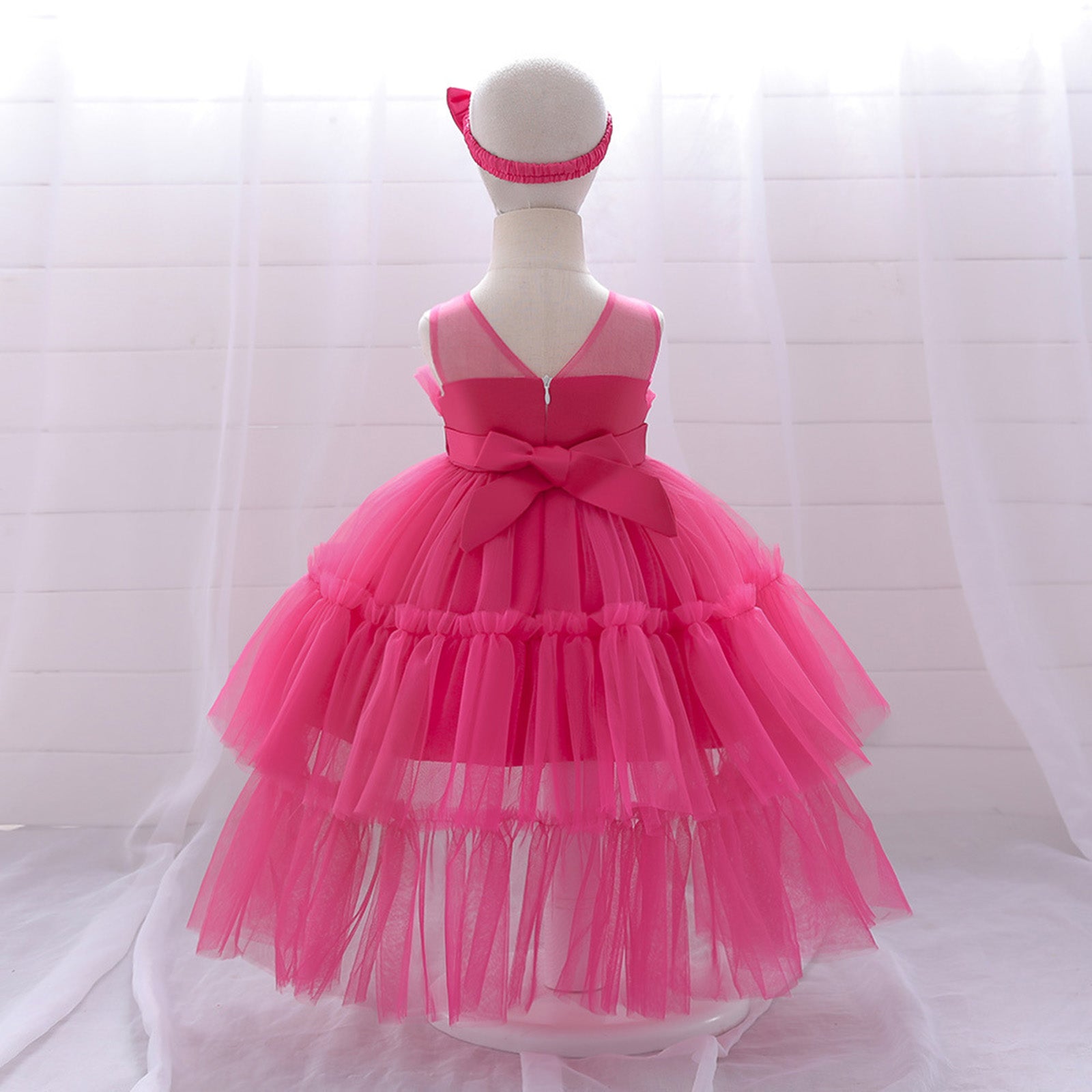 Baby Tulle Princess Pageant Ball Gown with Bowknot Headwear